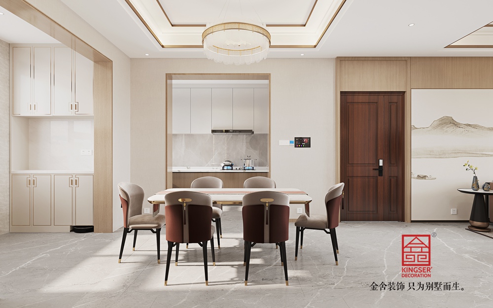 通過對(duì) 200 平空間的科學(xué)規(guī)劃,既保留中式風(fēng)格的文化底蘊(yùn),又以原木的自然質(zhì)感中和傳統(tǒng)中式的莊重,營(yíng)造出 “既有古意,又不陳舊;既顯簡(jiǎn)約,又含雅致” 的居住氛圍,讓居者在自然舒適的環(huán)境中,感受東方美學(xué)與現(xiàn)代生活的融合之美。