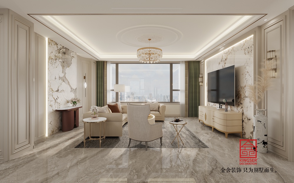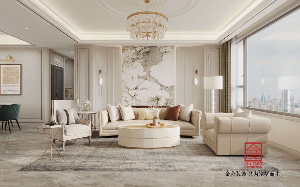 在設(shè)計(jì)過程中,摒棄了傳統(tǒng)美式可能存在的繁復(fù)與厚重,通過精簡線條、優(yōu)化材質(zhì)搭配、把控色彩層次,在保留美式風(fēng)格舒適氛圍的同時(shí),提升空間的時(shí)尚度與品質(zhì)感,打造出既符合現(xiàn)代審美,又能滿足居者對高品質(zhì)生活追求的居住空間,讓居者在自在愜意中感受輕奢生活的精致與美好。