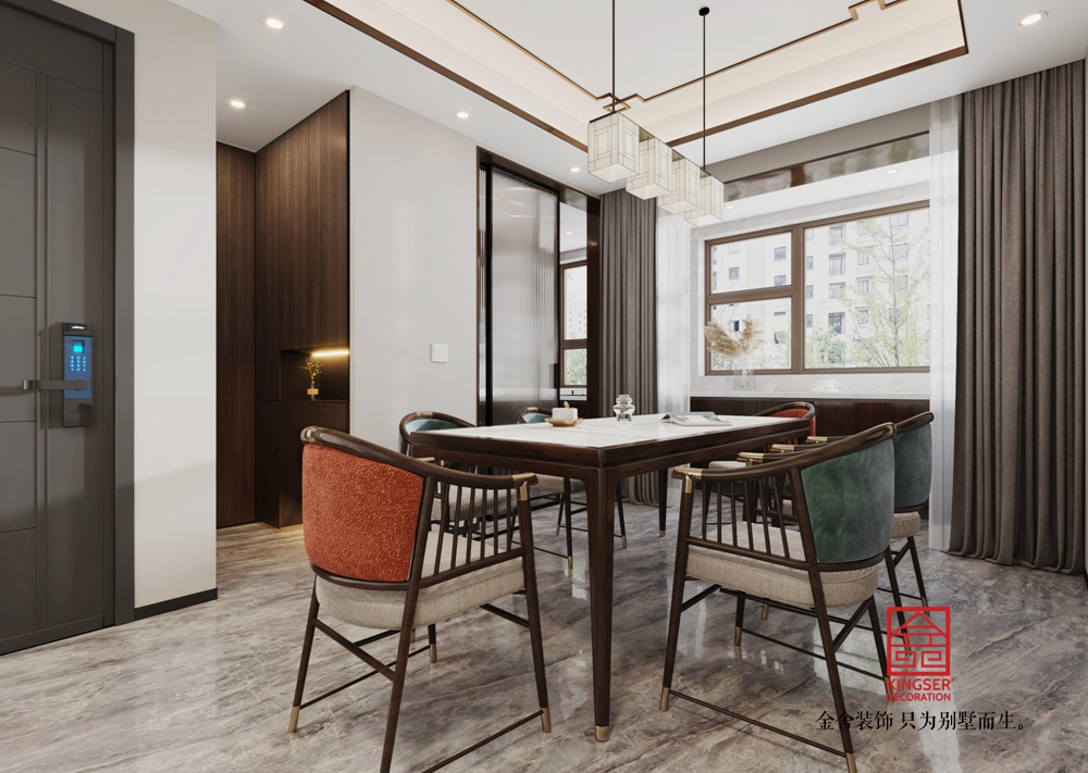 大面采光結合輕紗窗簾,讓自然光輕柔灑落,與室內的綠植、掛畫等相互映襯,營造出 “天人合一” 的意境,打造出一個既有傳統文化底蘊,又符合現代生活需求的舒適居所。