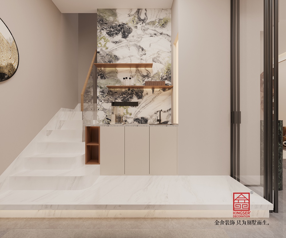 此案例為石家莊裝修-金地閱峯下躍的現代輕奢風格裝修效果圖。